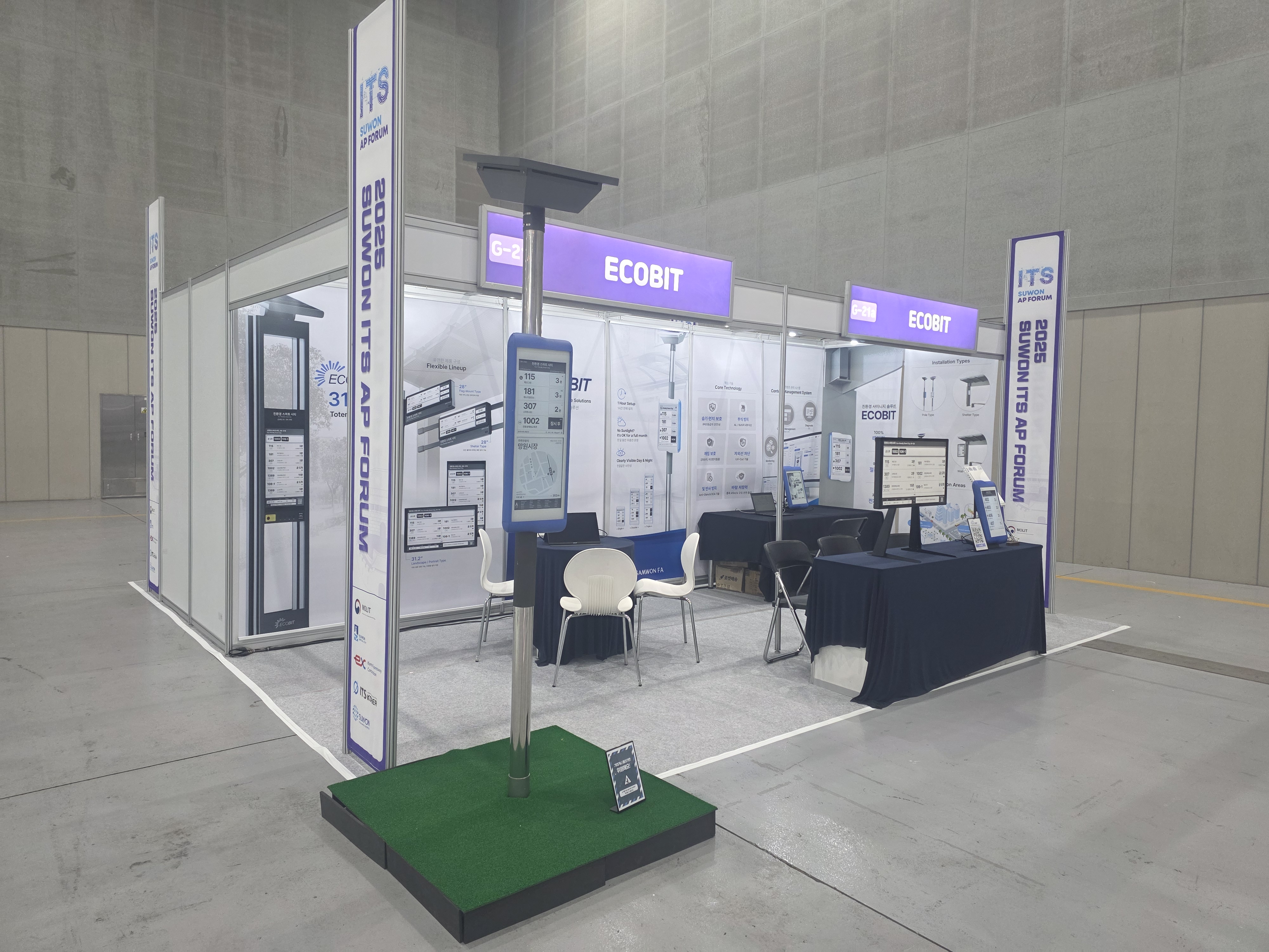 삼원FA는 이번 전시회에서 친환경 태양광 버스정보안내기 ECOBIT을 선보였다. ECOBIT은 ▲전력 인입이 필요 없는 100% 태양광 기반 초저전력 설계 ▲전자종이(e-Paper) 디스플레이를 통한 탁월한 주간 가독성과 야간 빛공해 해소 ▲간편한 모듈형 설치 구조를 강점으로 하는 차세대 교통 인프라 솔루션이다.